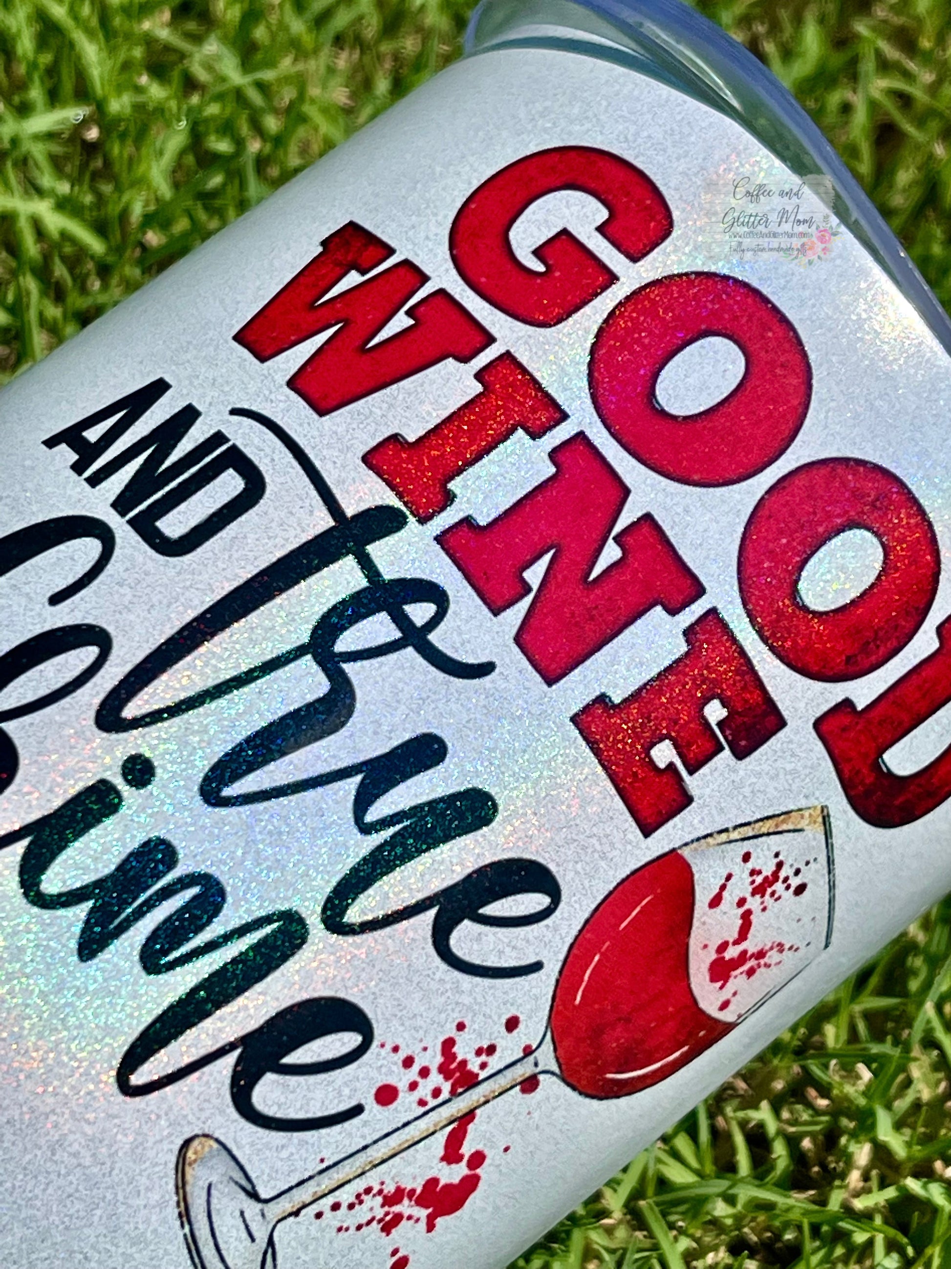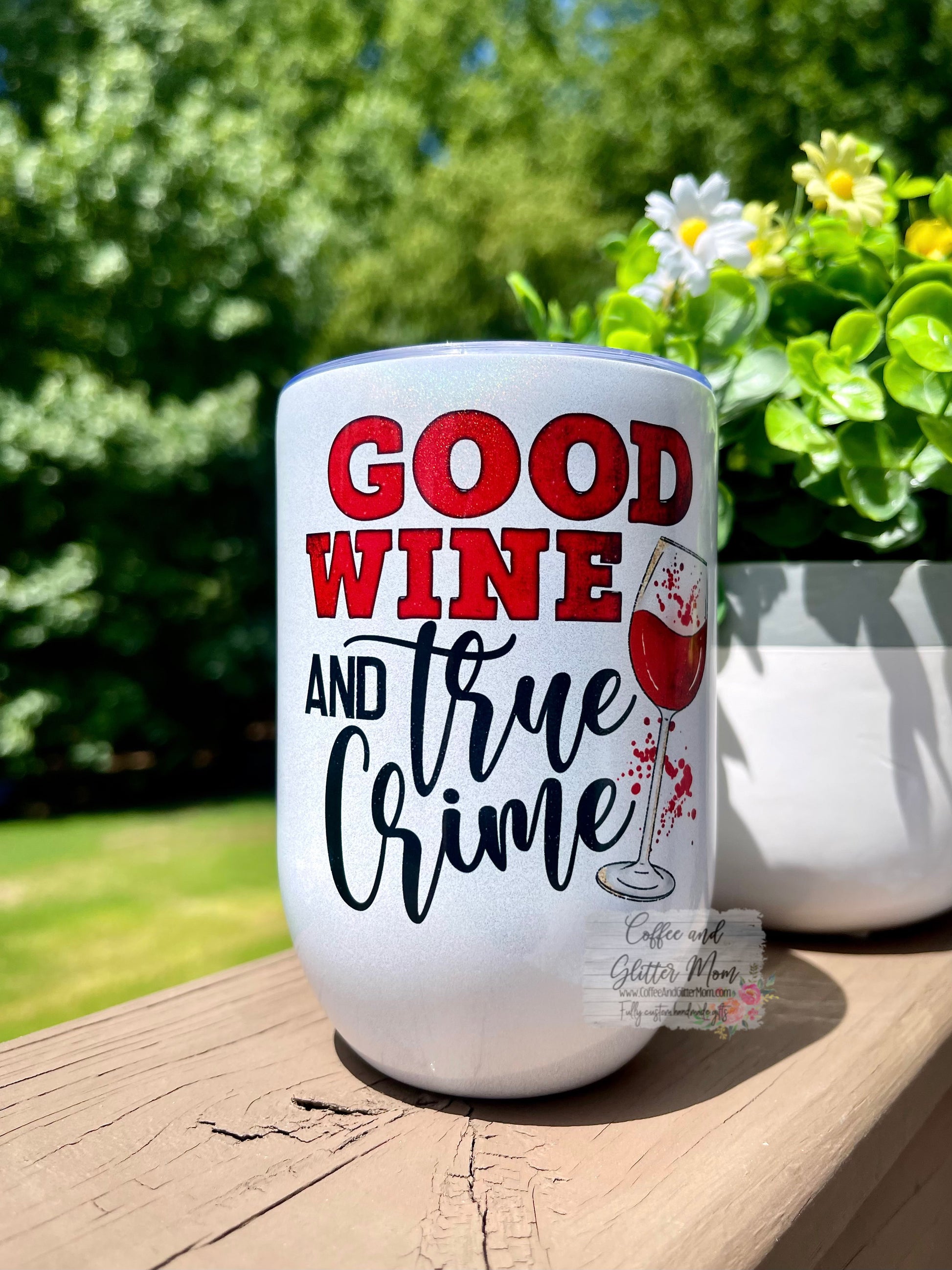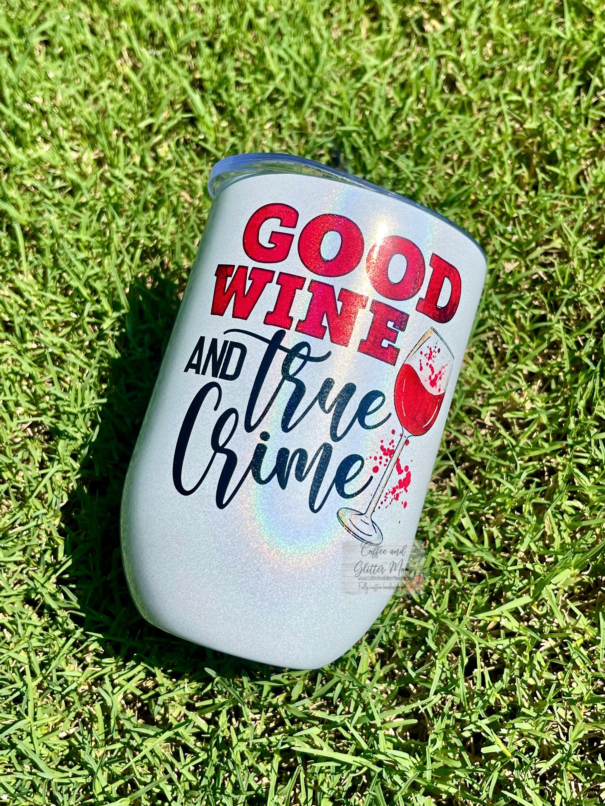 Good Wine and True Crime 12oz Holographic Sparkle Wine Tumbler