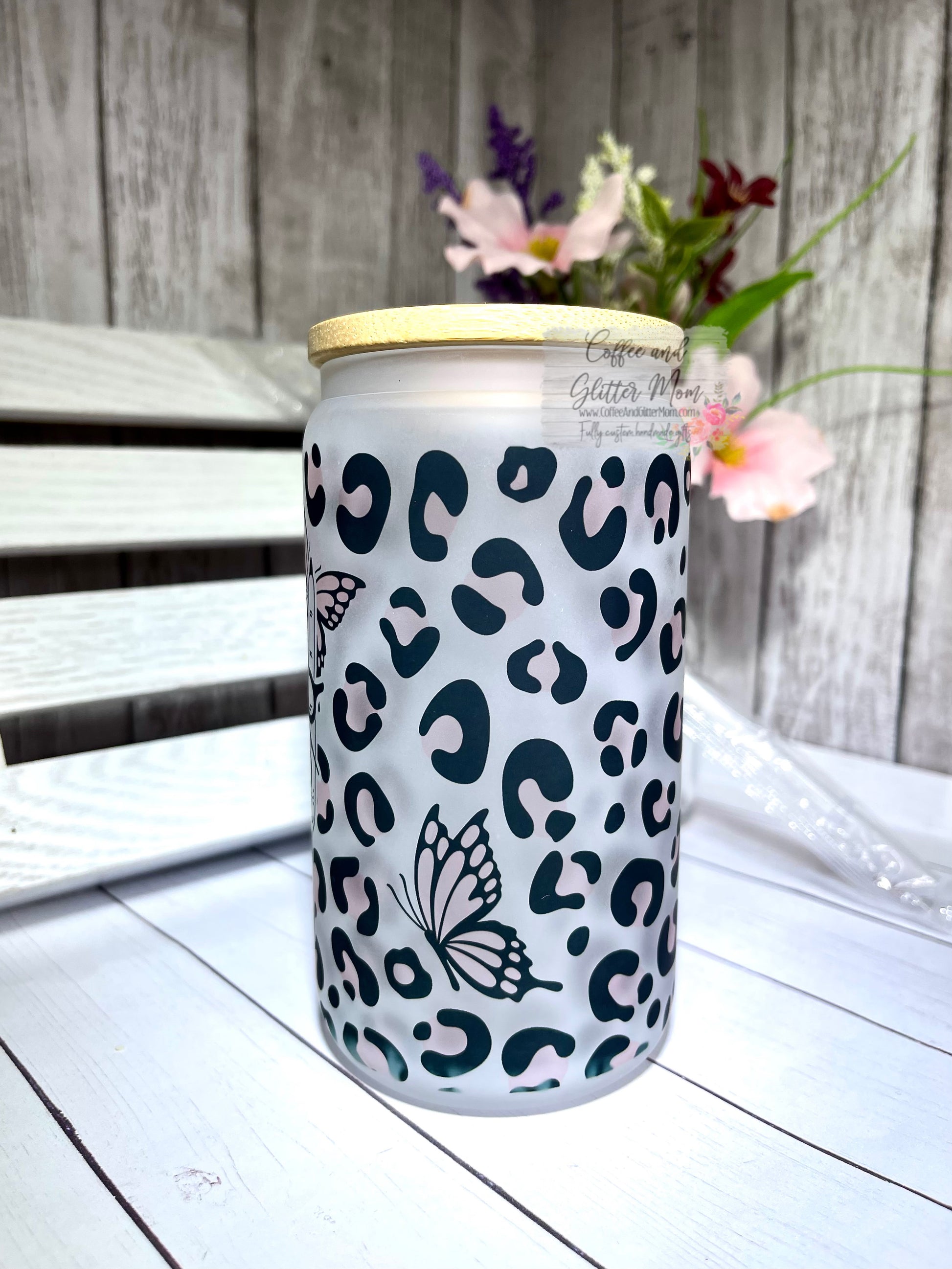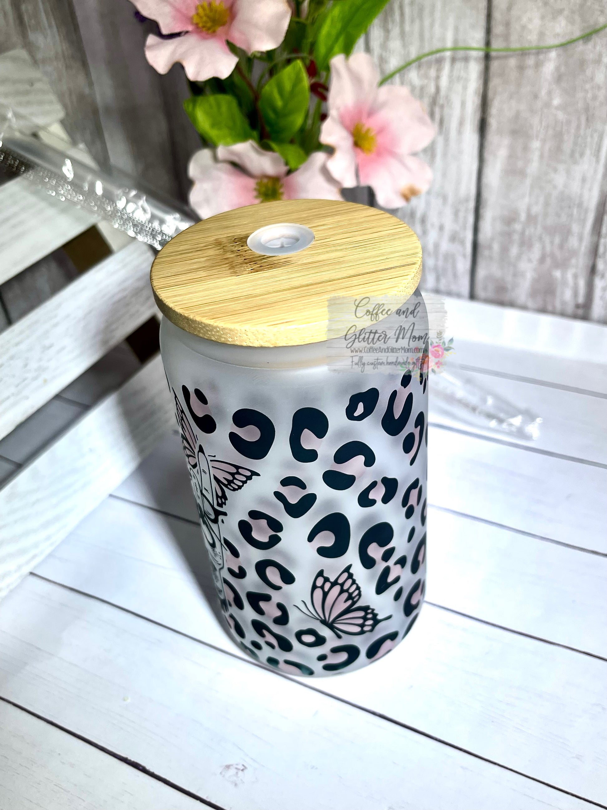 Each 12oz glass can comes with bamboo lid and straw included. They stand about 5 inches tall and are about 9.25 inches around for a perfect and comfortable fit in your hand! This glass can with lid makes the perfect gift for you and your loved one. As this is a frosted glass can, you can see the image from the inside as well as the outside! A clear straw is also included. Sometimes the bamboo lid may need to be almost 'screwed' a little to suction tight, it has a rubber ring for a tight seal on the inside! The straw hole also has a rubber closure to help prevent too many spills!