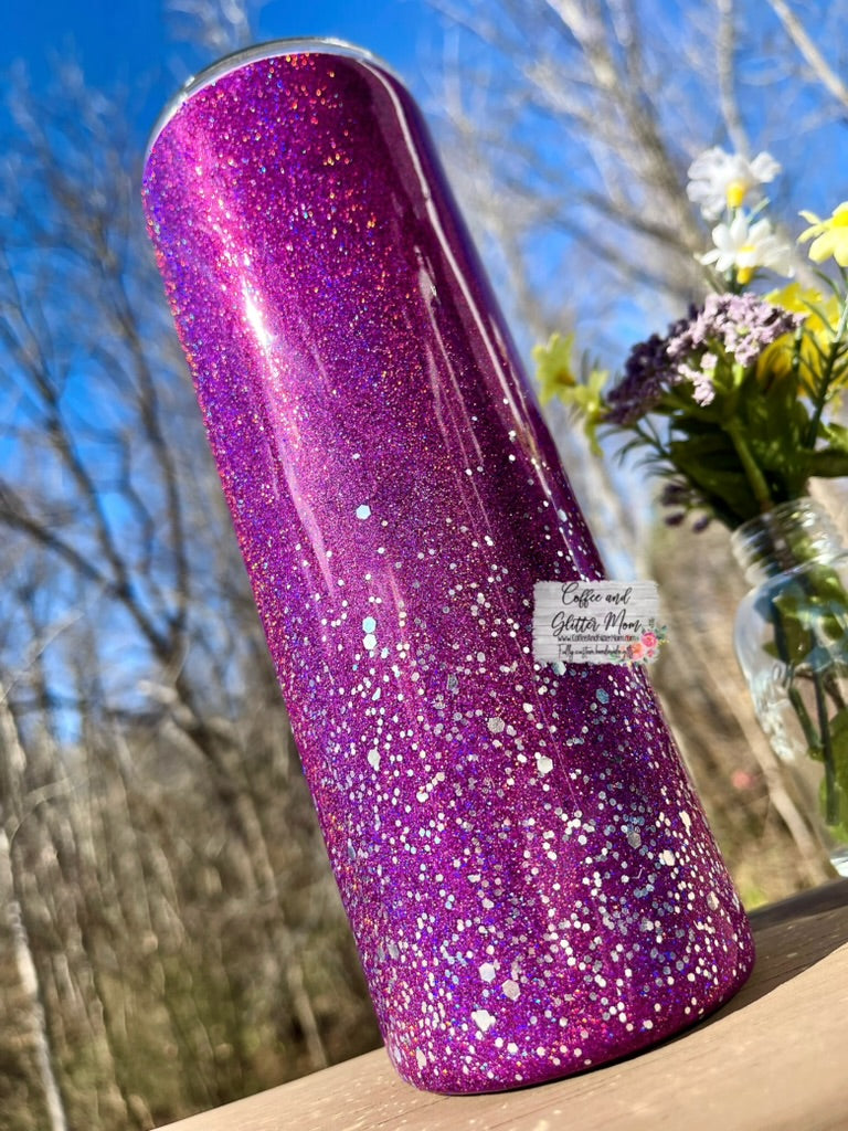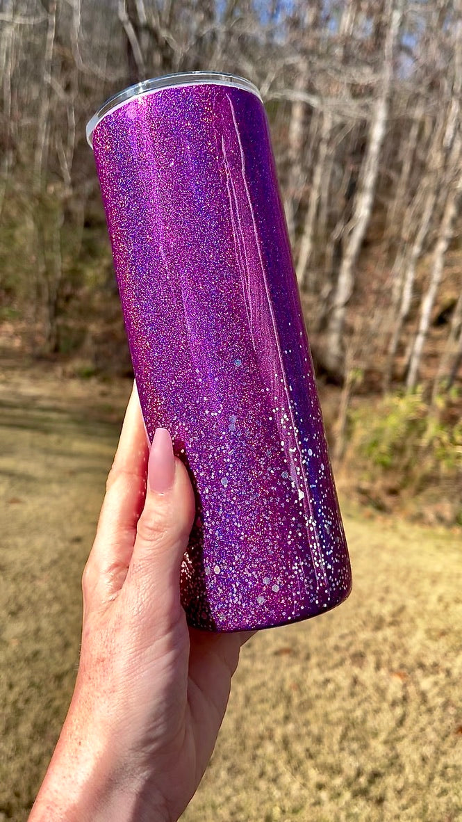 Holographic Plum Purple and Silver 20oz Skinny Tumbler