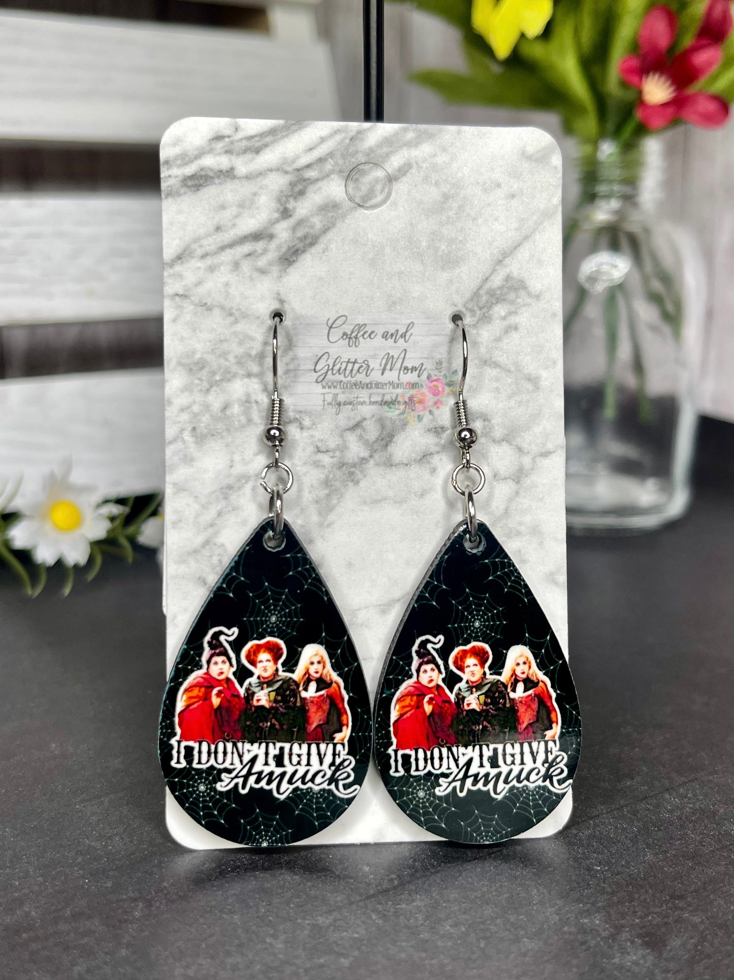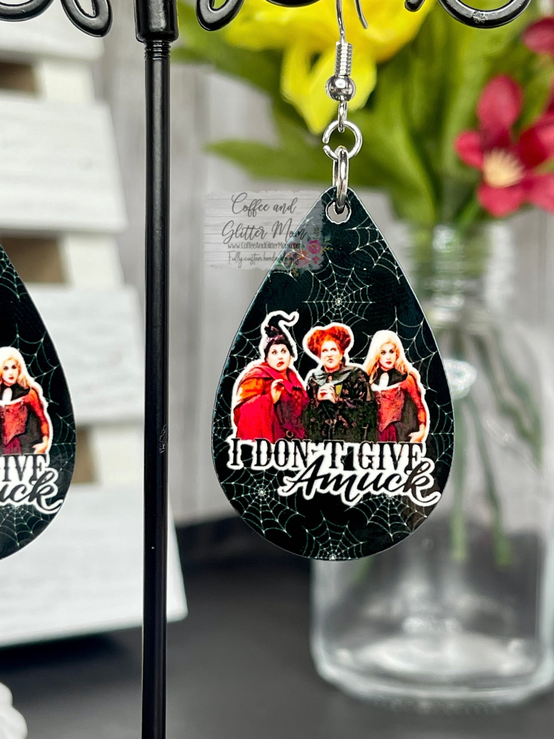 I Don't Give Amuck Halloween Witches Teardrop Earrings