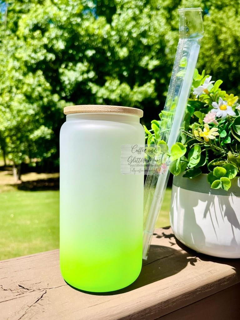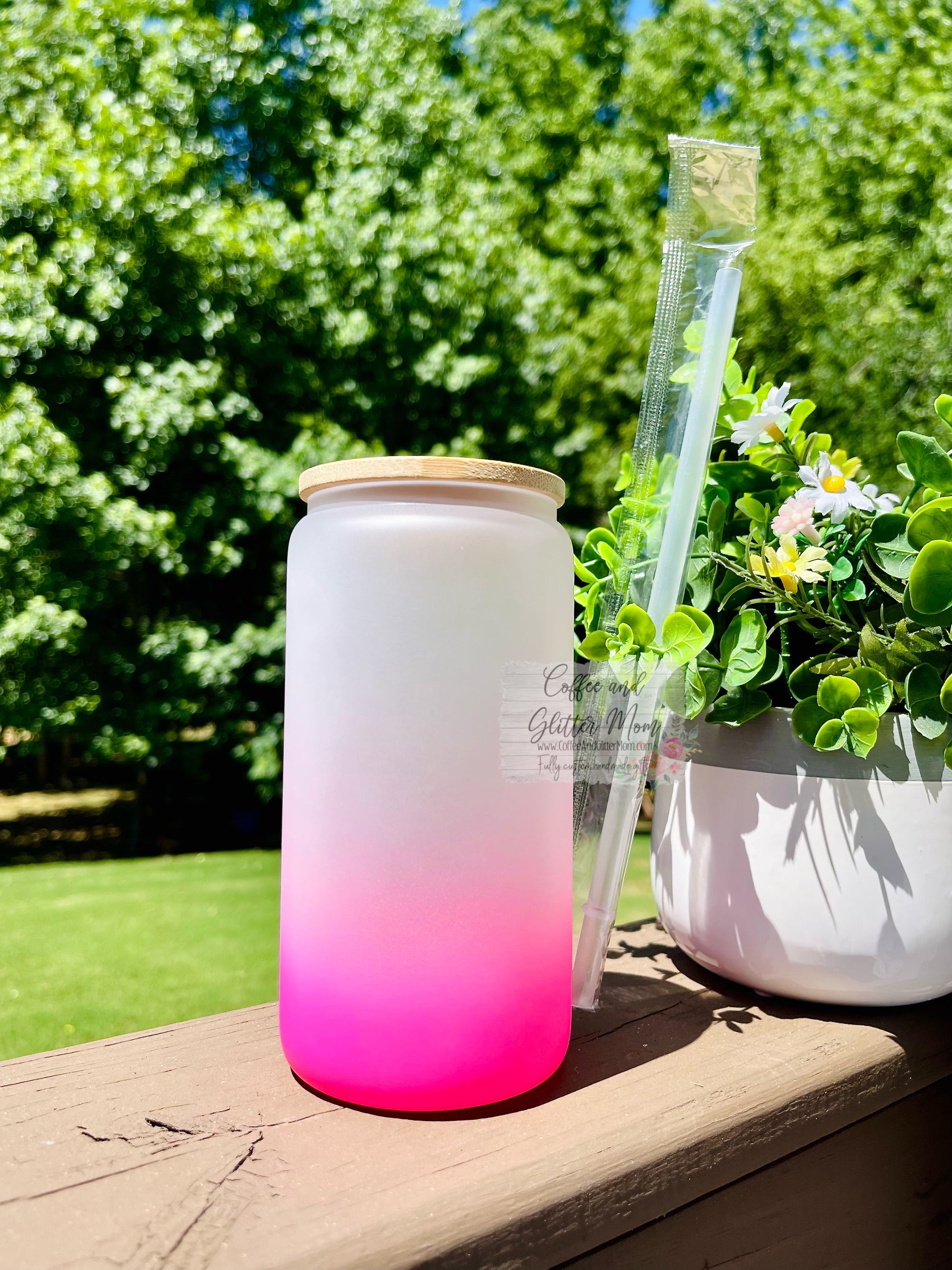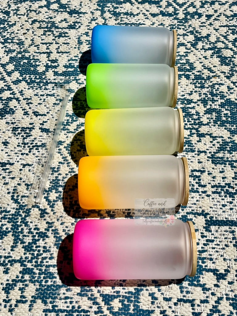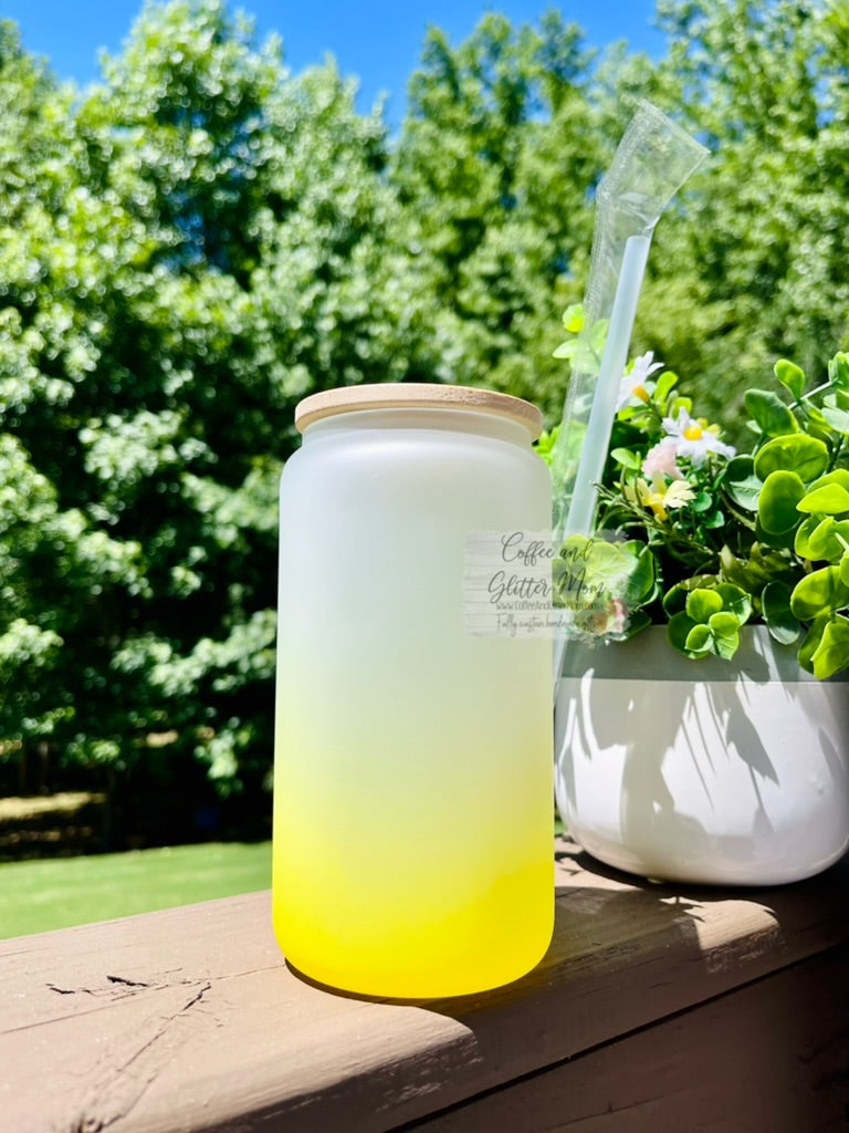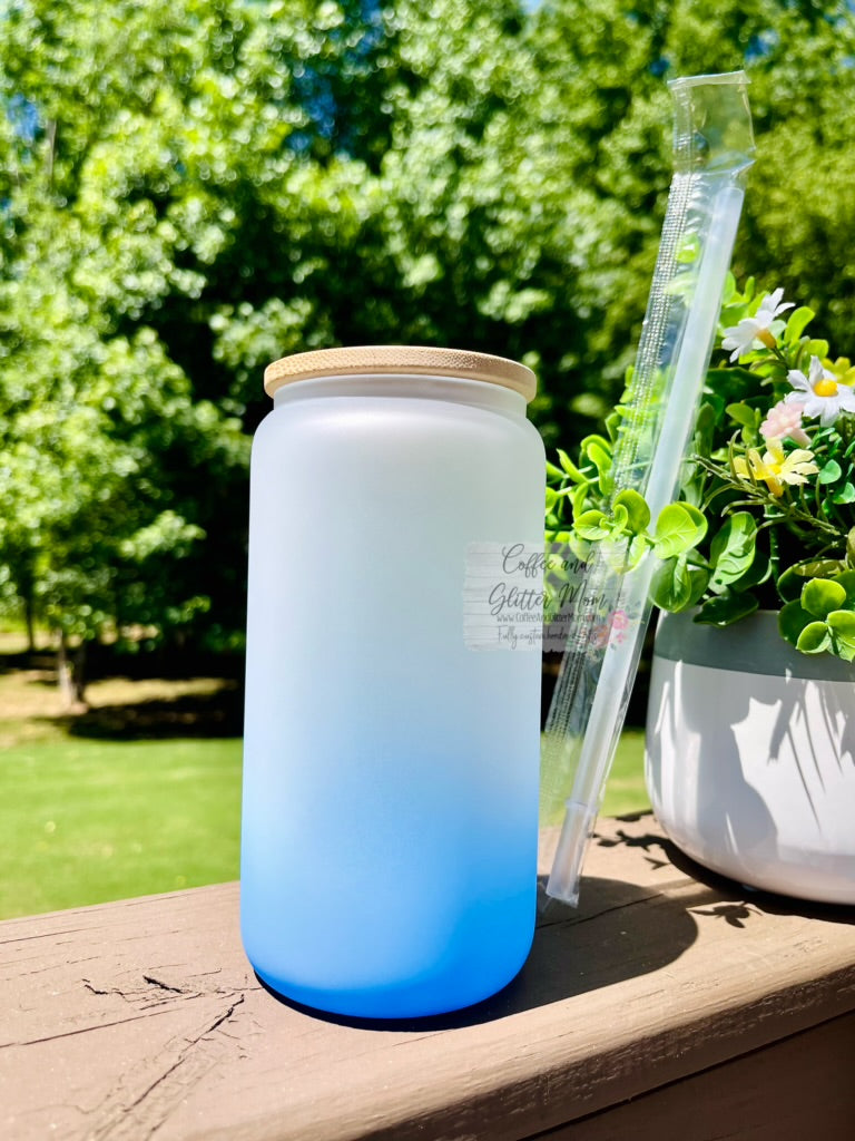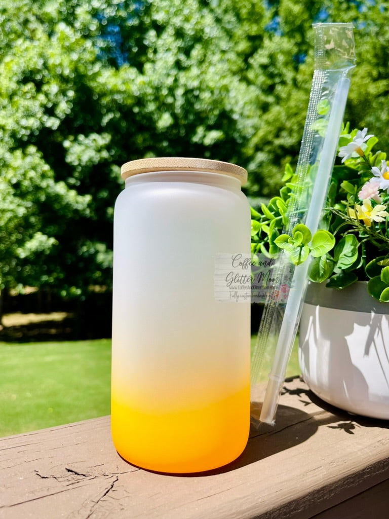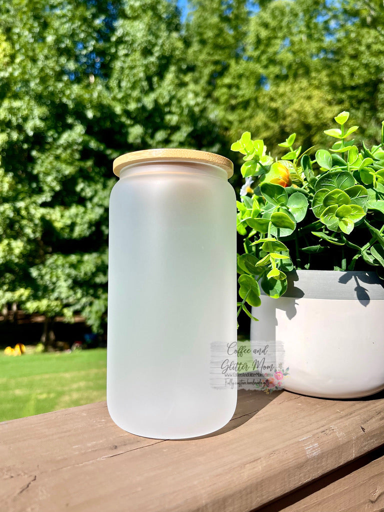 These glass cans are perfect for iced coffee, wine, beer, or any cocktail of your choice! (Pictured on the 12oz frosted glass can)