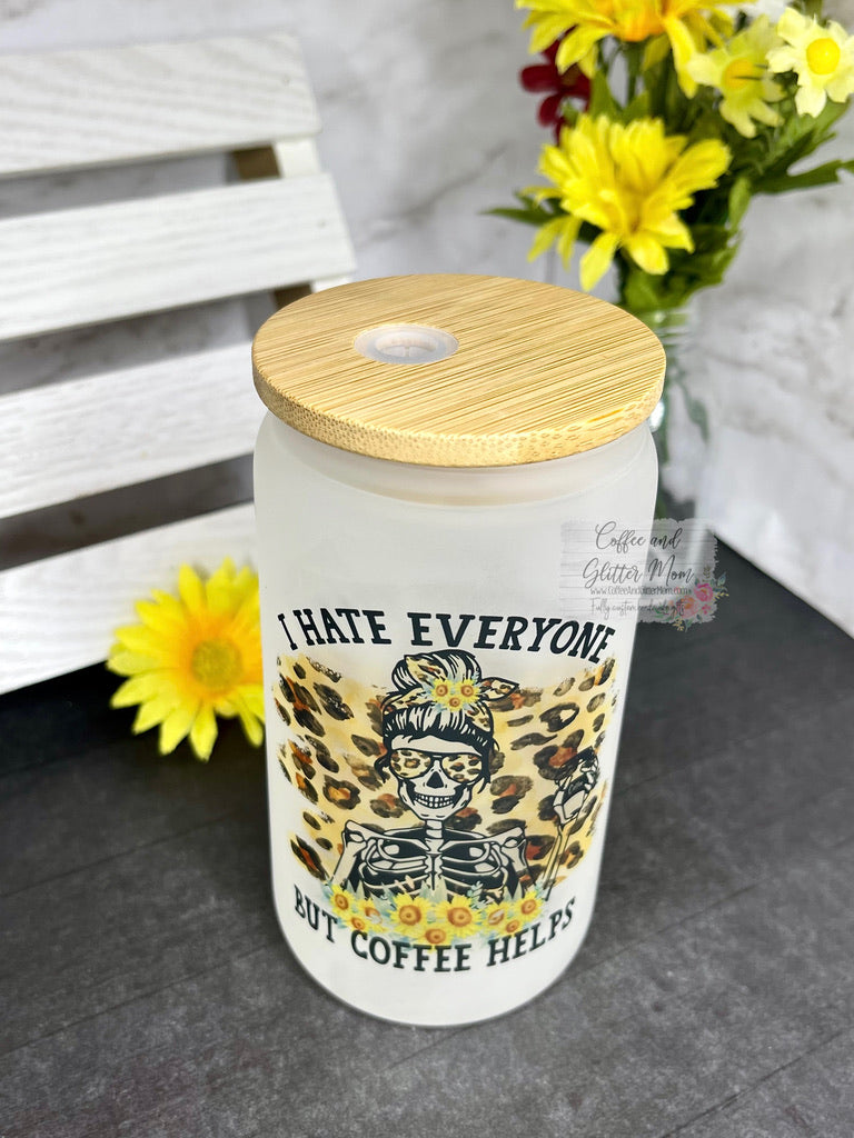 I Hate Everyone But Coffee Pick Your Color Glass Can