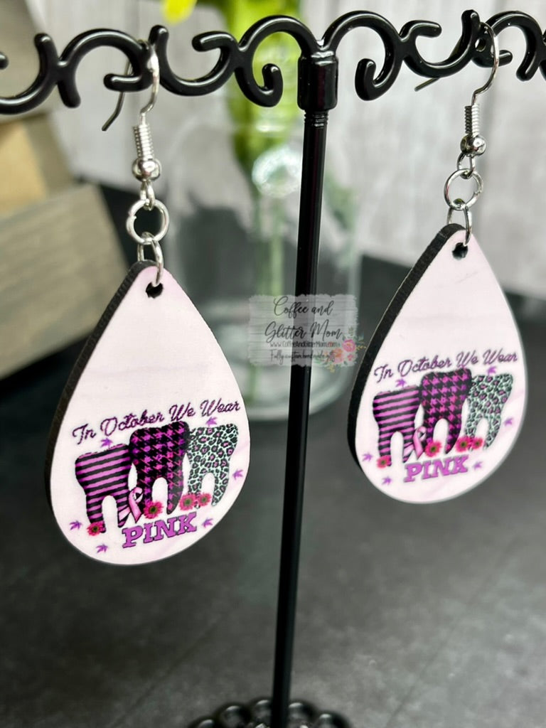 In October We Wear Pink Halloween Teeth Earrings