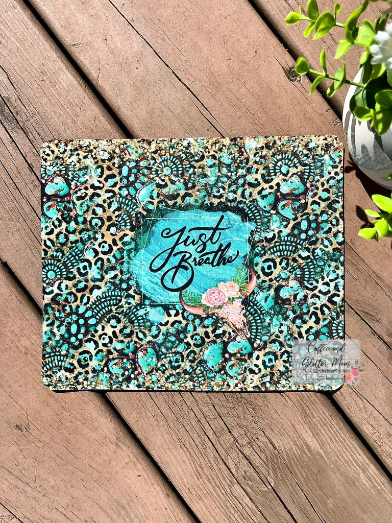 Just Breathe Turquoise Leopard Mouse Pad