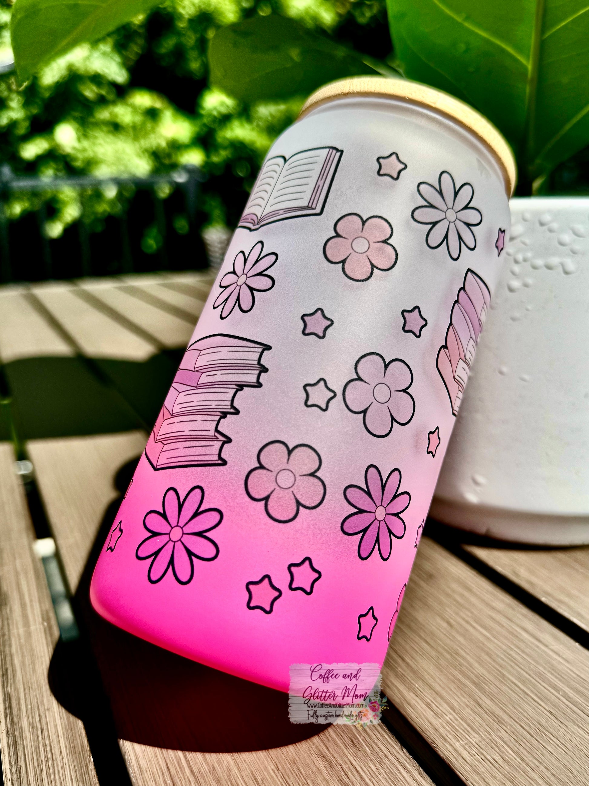 These glass cans come with bamboo lids and straws included. They stand about 6 inches tall and is about 10 inches around for the 16oz size. This glass can with lid makes the perfect gift for you and your loved one. As this is a glass can, you can see the image from the inside as well as the outside!