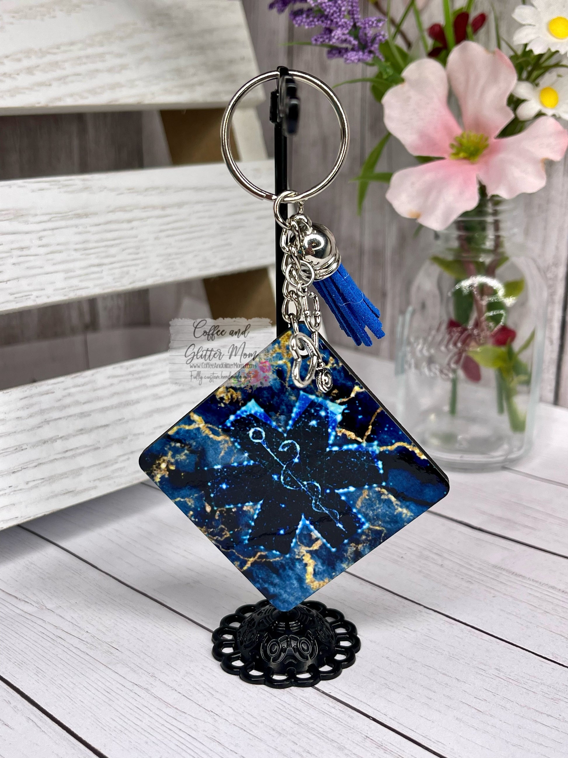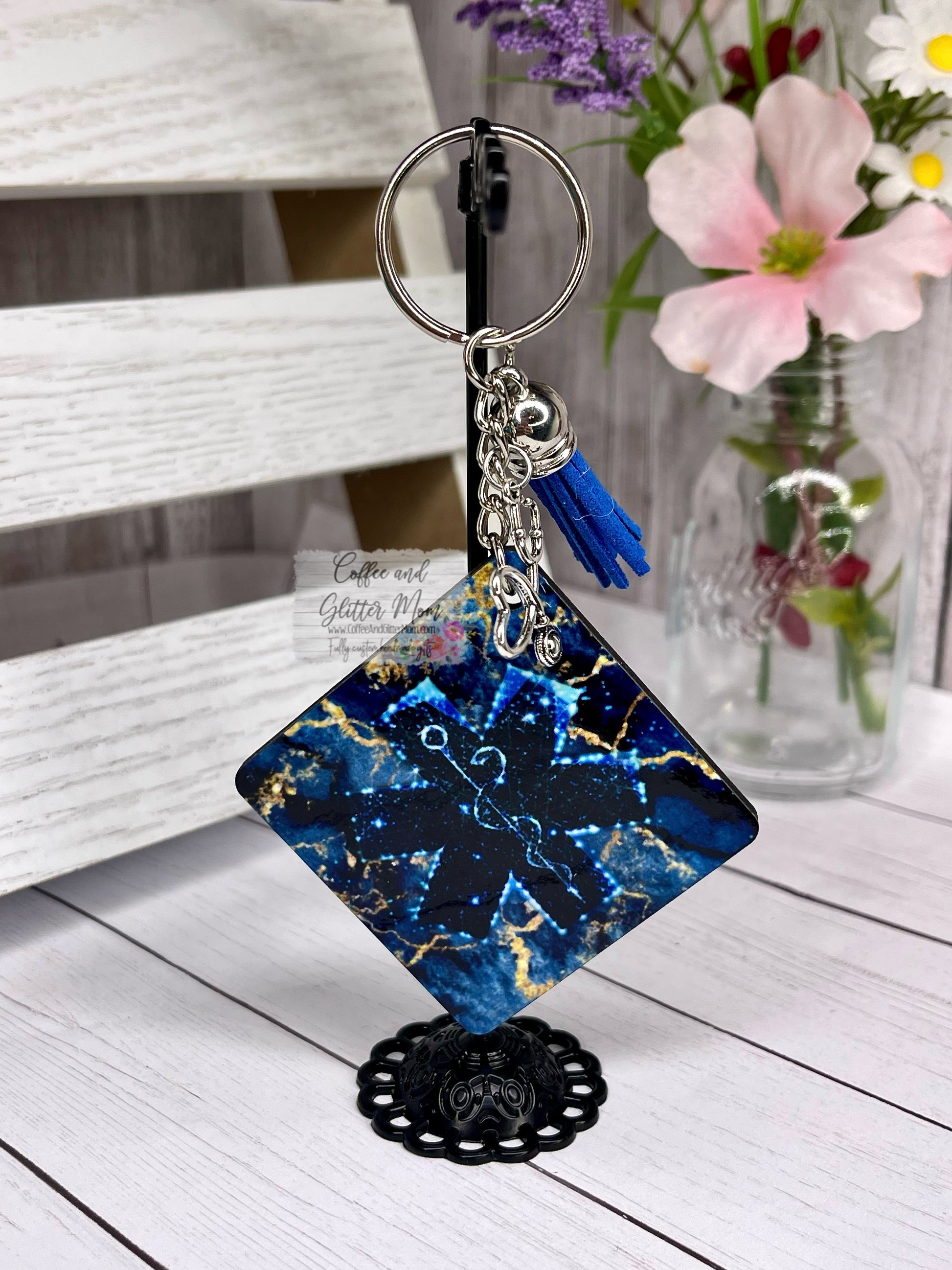 They measure approximately 2 inches in diameter, with a hanging length of approximately 3.5 inches, and come with a strong silver keyring. Tassel and charm may vary, if you have a preferred tassel color feel free to add it to your notes, but color selection is not guaranteed. As this is a handmade item, actual placement and size of images may vary.