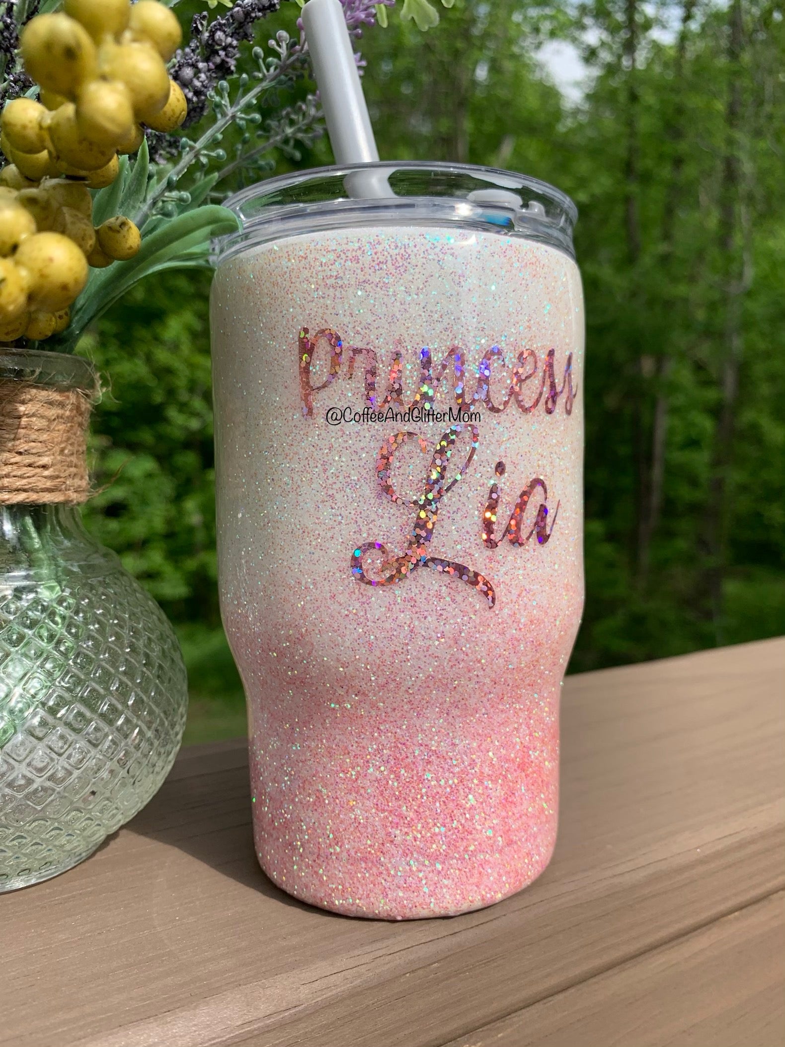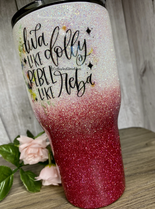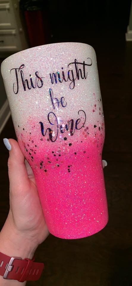 Shown on the 'this might be wine' tumbler (mine, haha!) with ultra fine Water Lily, Bella Blush, Berrylicious, and Chunky Sweet Pea on the bottom on the pictured tumblers.