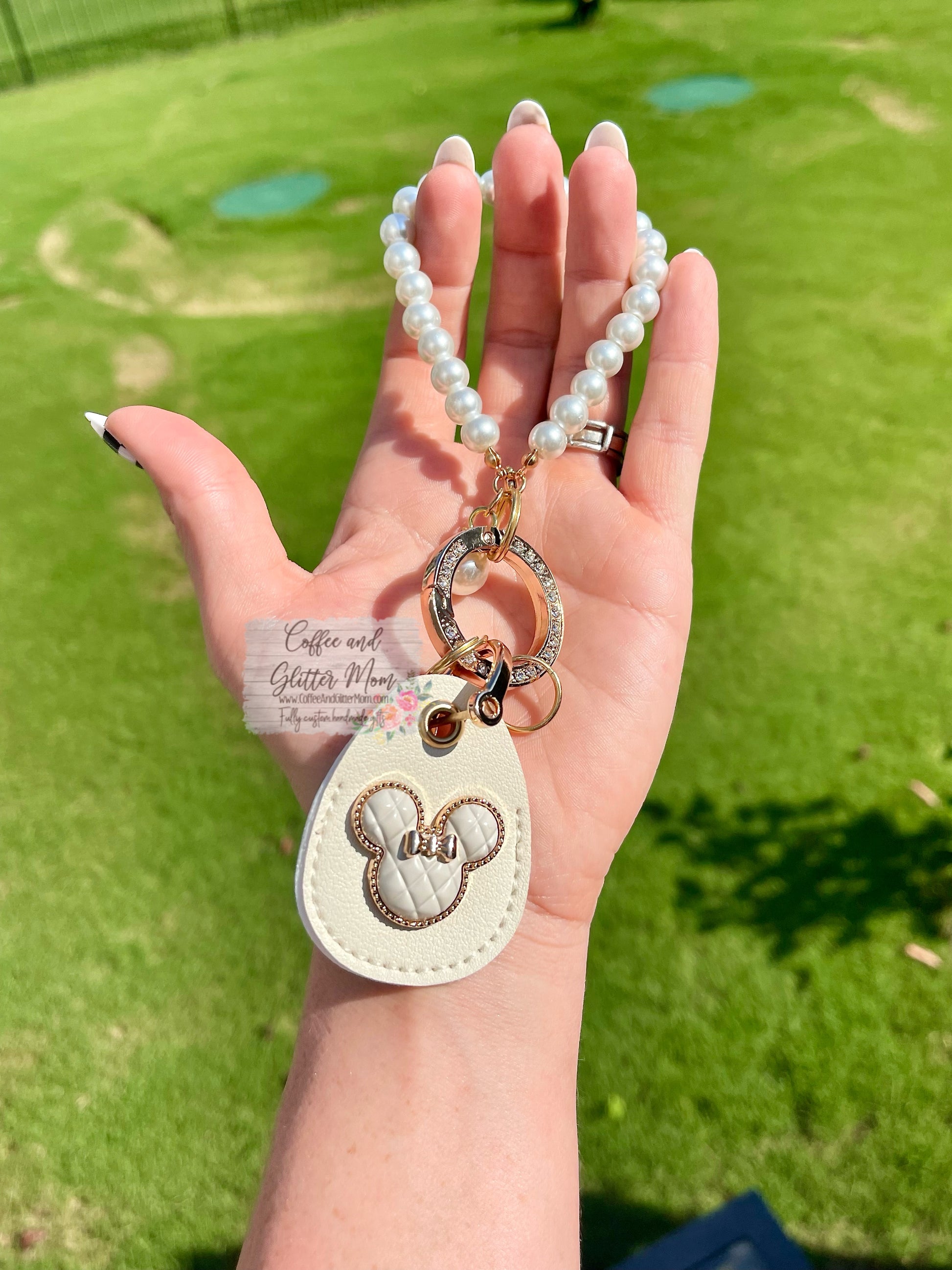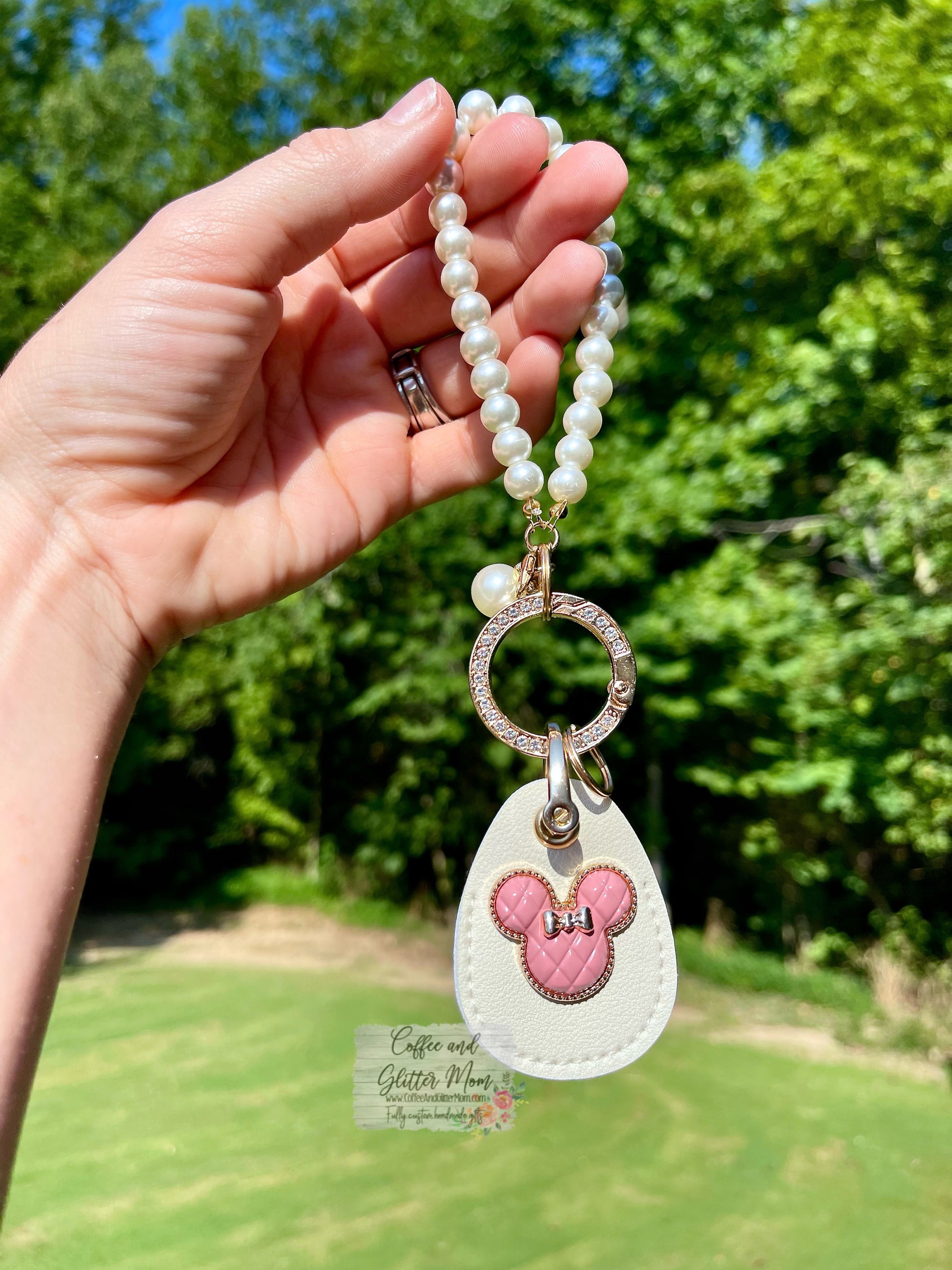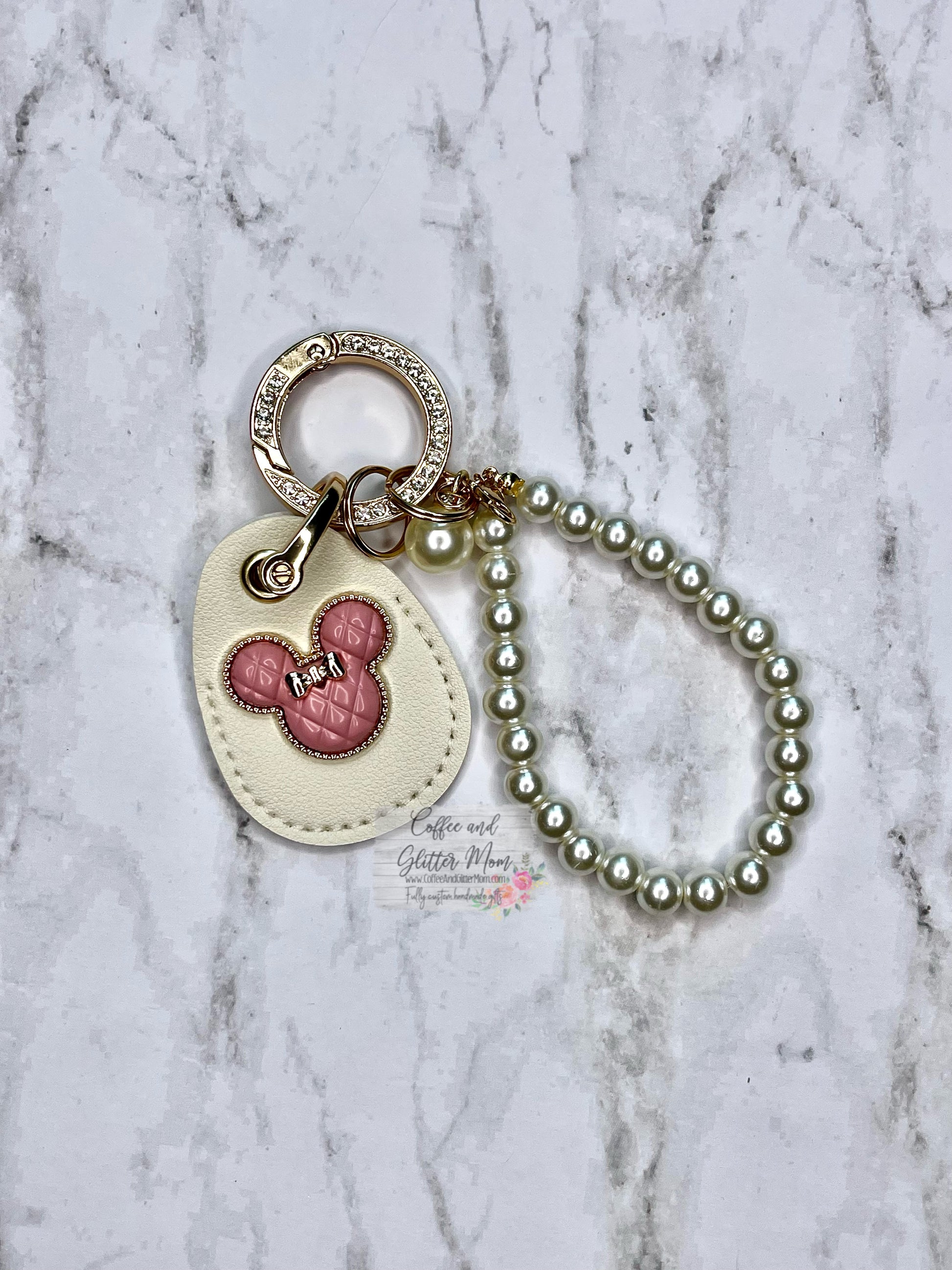 The perfect accessory to always keep your keys close! The faux leather complete with the soft pink mouse really pop with the faux pear accents and shimmering rhinestones with a golden finish. *this is a pre-order - I only got supplies for 2 at first to test and see how they went and they sold out right away (thank you!!!) so I got some more to make limited quantities again, get yours before they sell out!