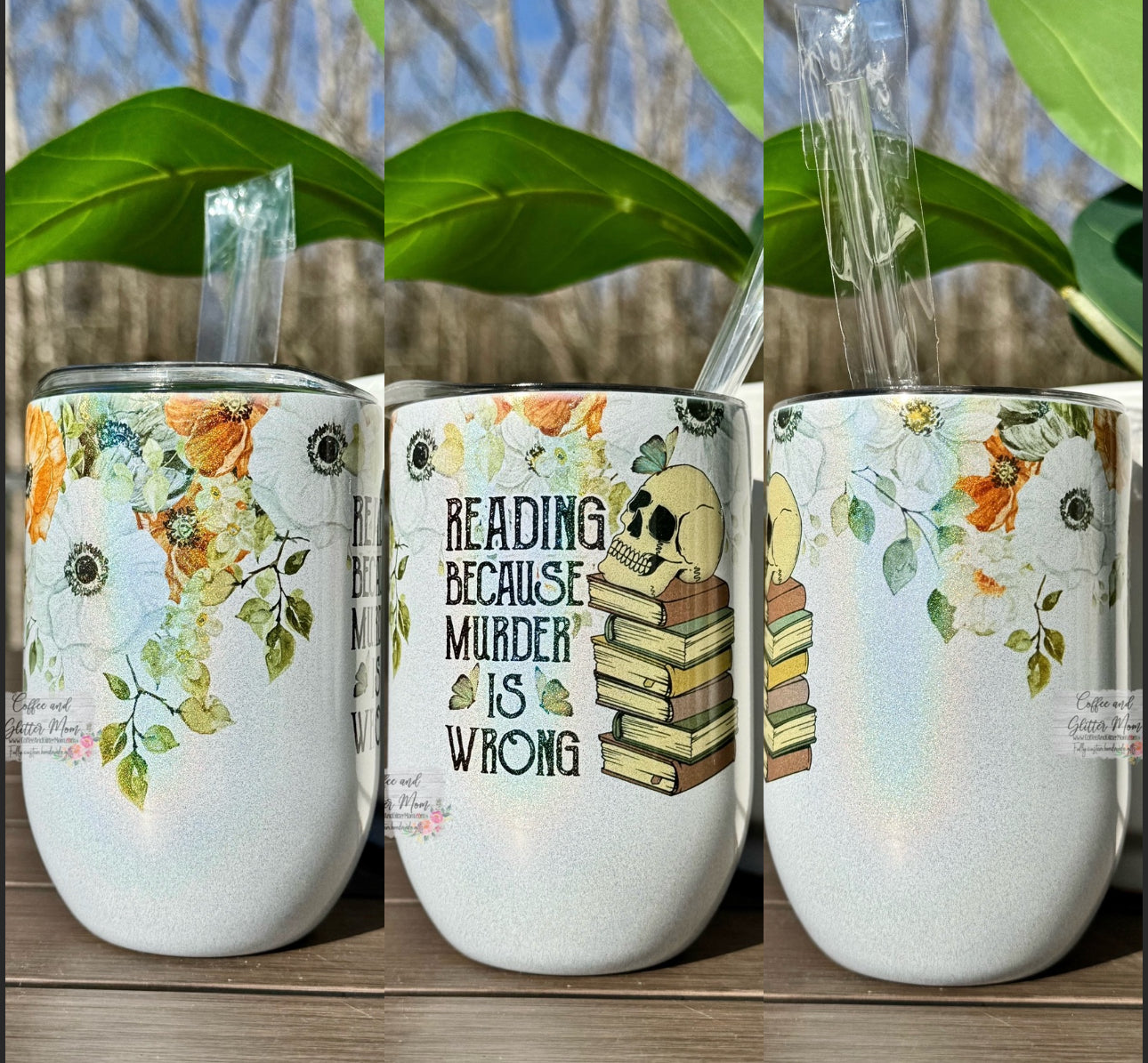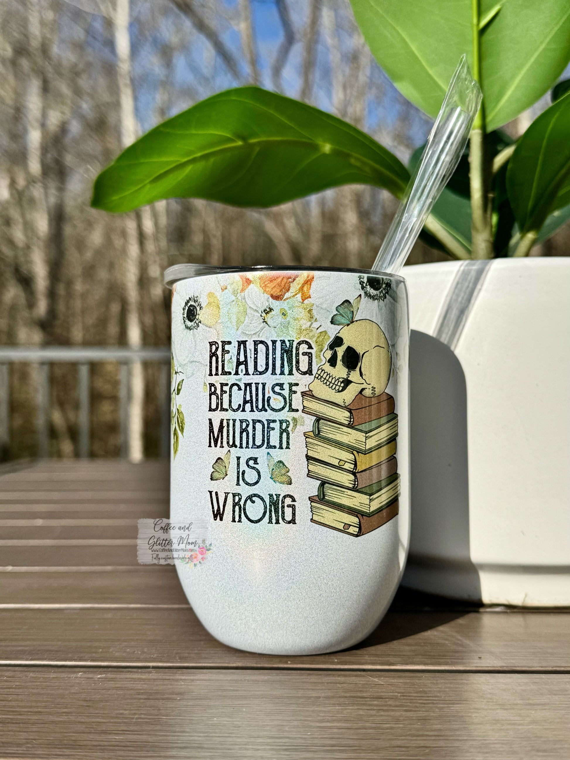 Reading Because Murder is Wrong 12oz Holographic Wine Tumbler
