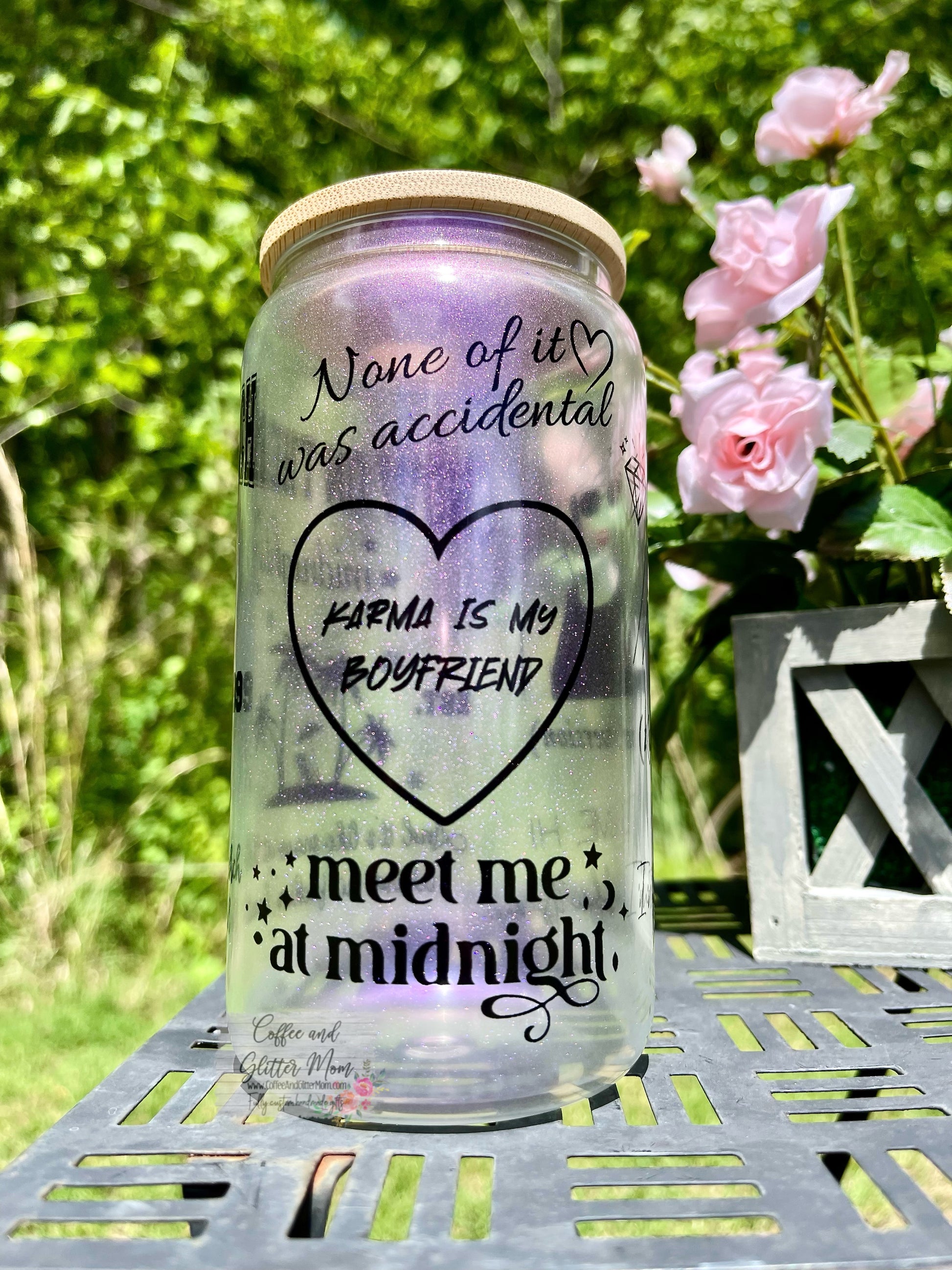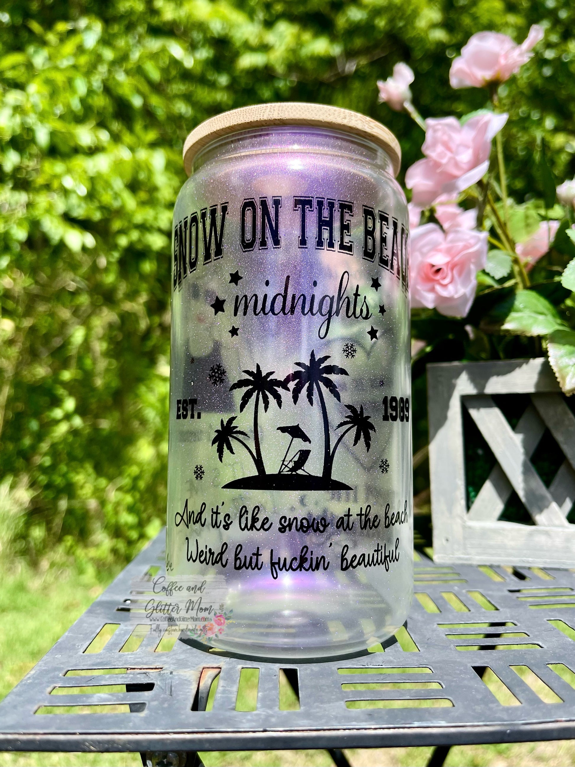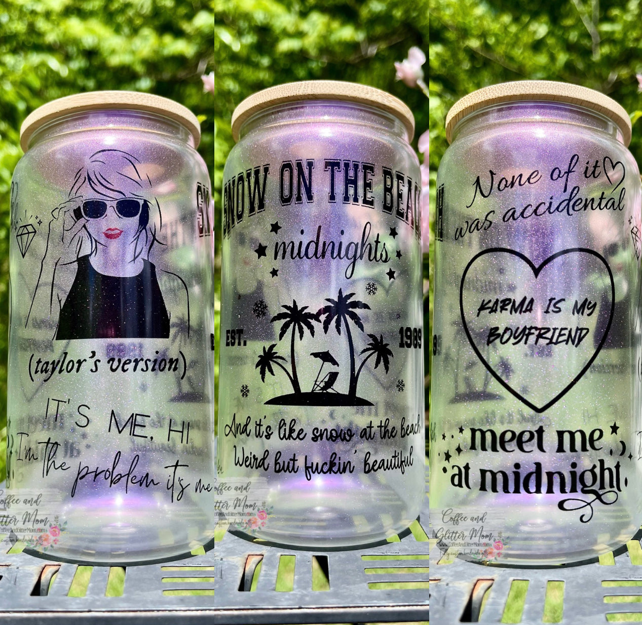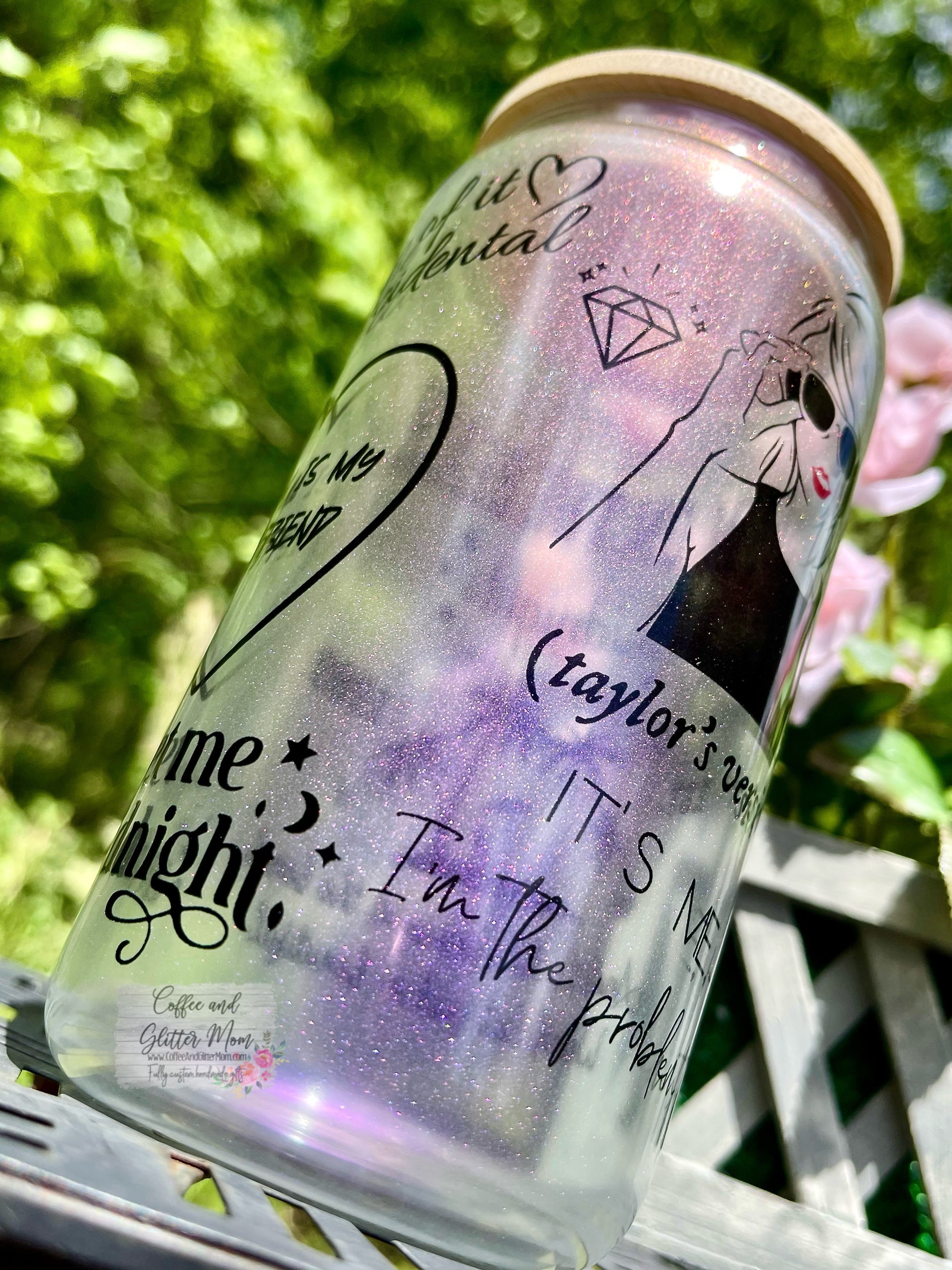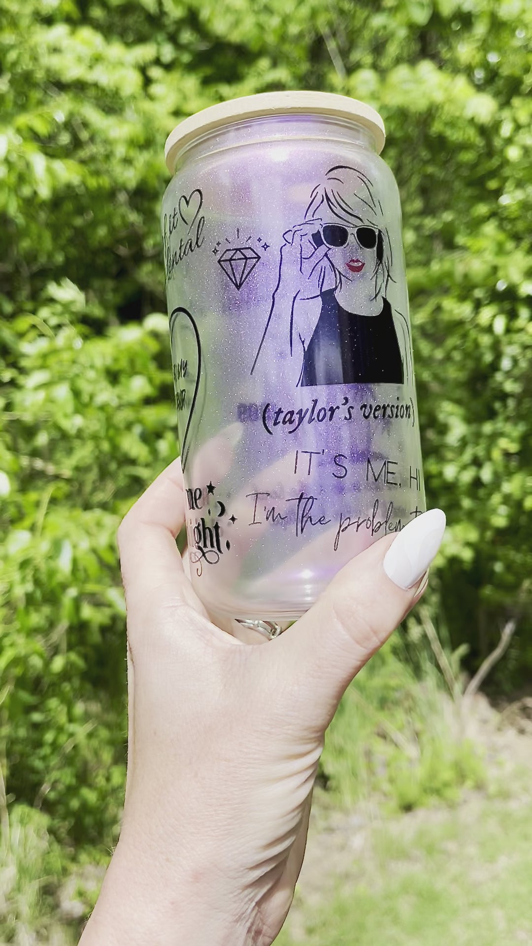 These adorable iridescent glass cans are perfect for iced coffee, wine, beer, or any cocktail of your choice! The pink has a stunning golden color-shift, one in stock and ready to ship!