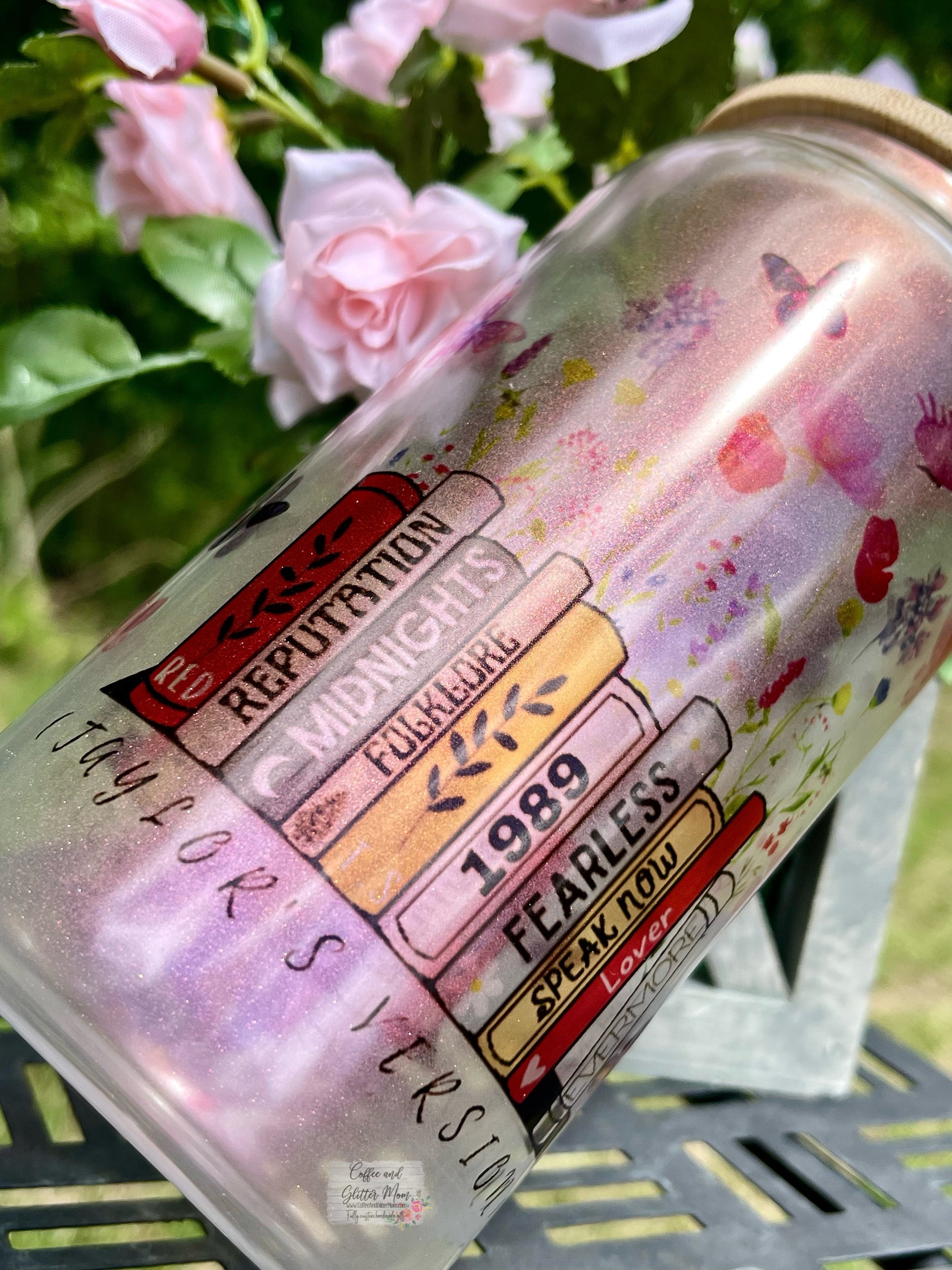 For those midnights spent in a lavender haze when you know you can still make the whole place shimmer ;) These adorable iridescent glass cans are perfect for iced coffee, wine, beer, or any cocktail of your choice! The pink has a stunning golden color-shift with a purple undertone. One in stock and ready to ship!
