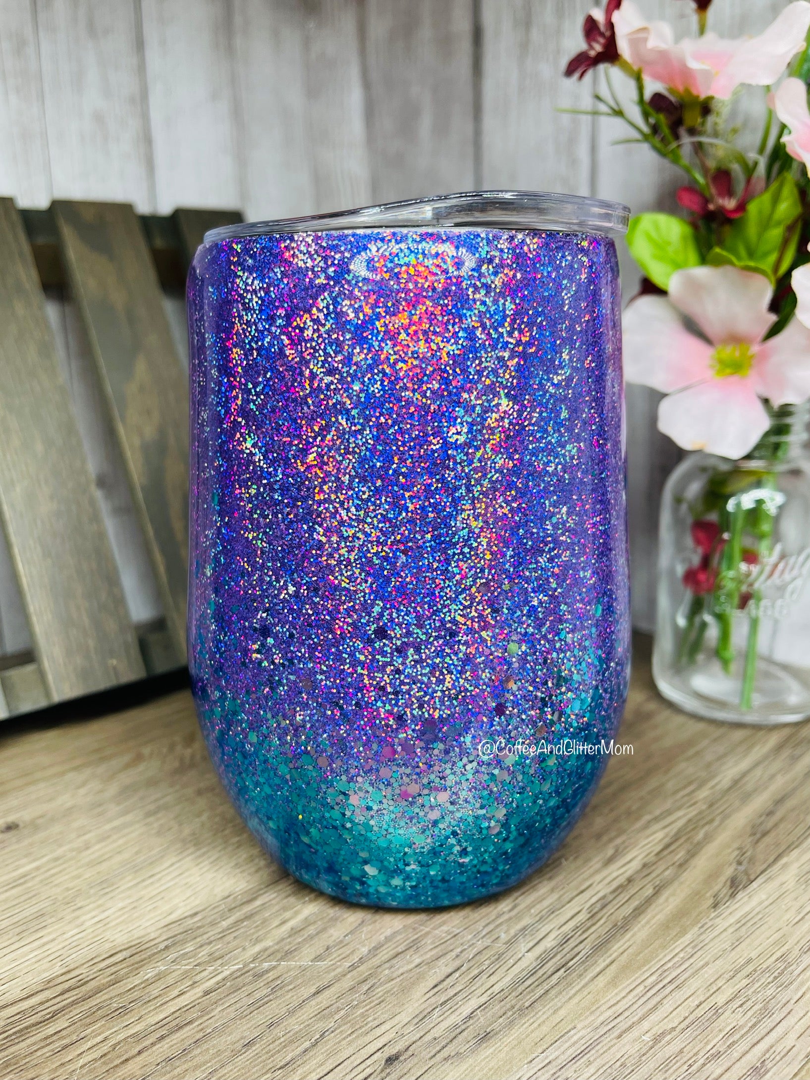 The fine color on top is a super holographic purple called 'Electrified.' The bottom is a STUNNING chunky called Mystic that is a dark purple that color shifts to blue and blue/green and teal tones!