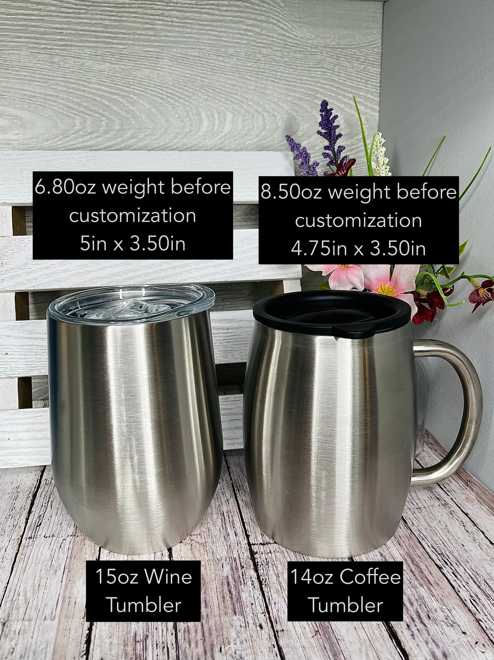 Talk about easy ordering! You'll be receiving this exact color combination pictured in the size you order, with your own custom decals. Straws are included with the Skinnies, wine tumbler and kids tumbler sizes. All tumblers are BPA Free and double-wall insulated.